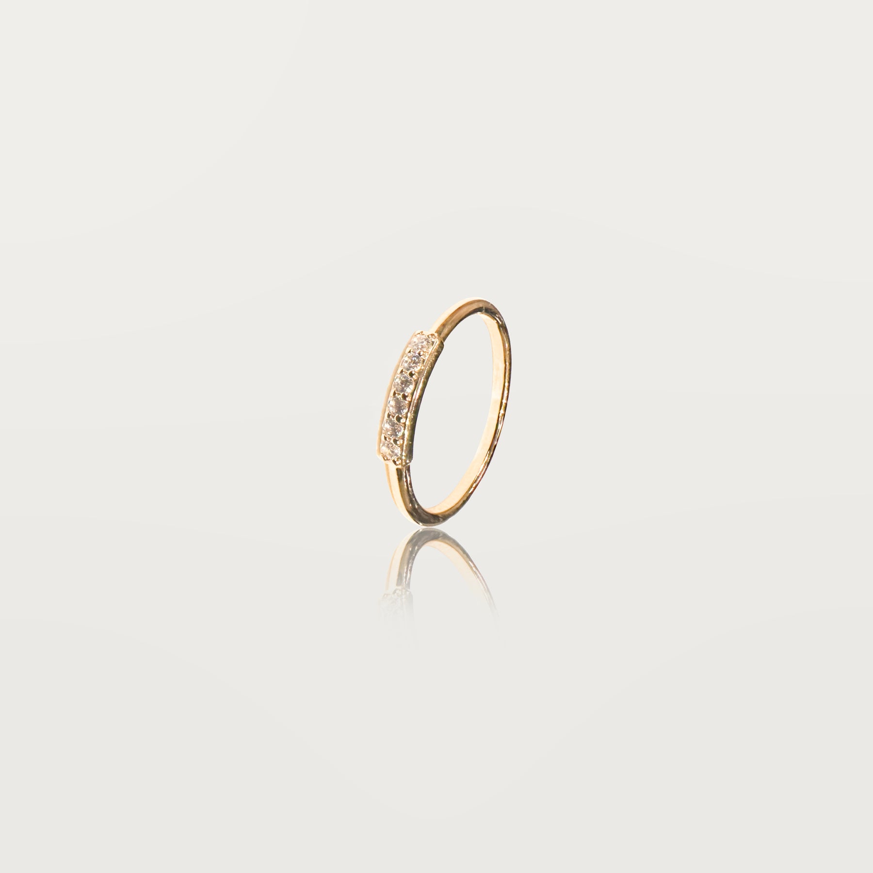 Cette bague séduit par sa simplicité élégante et son éclat raffiné. Son anneau fin, sublimé par un pavage délicat de zircons, capte la lumière avec subtilité et apporte une touche de sophistication à vos gestes du quotidien.