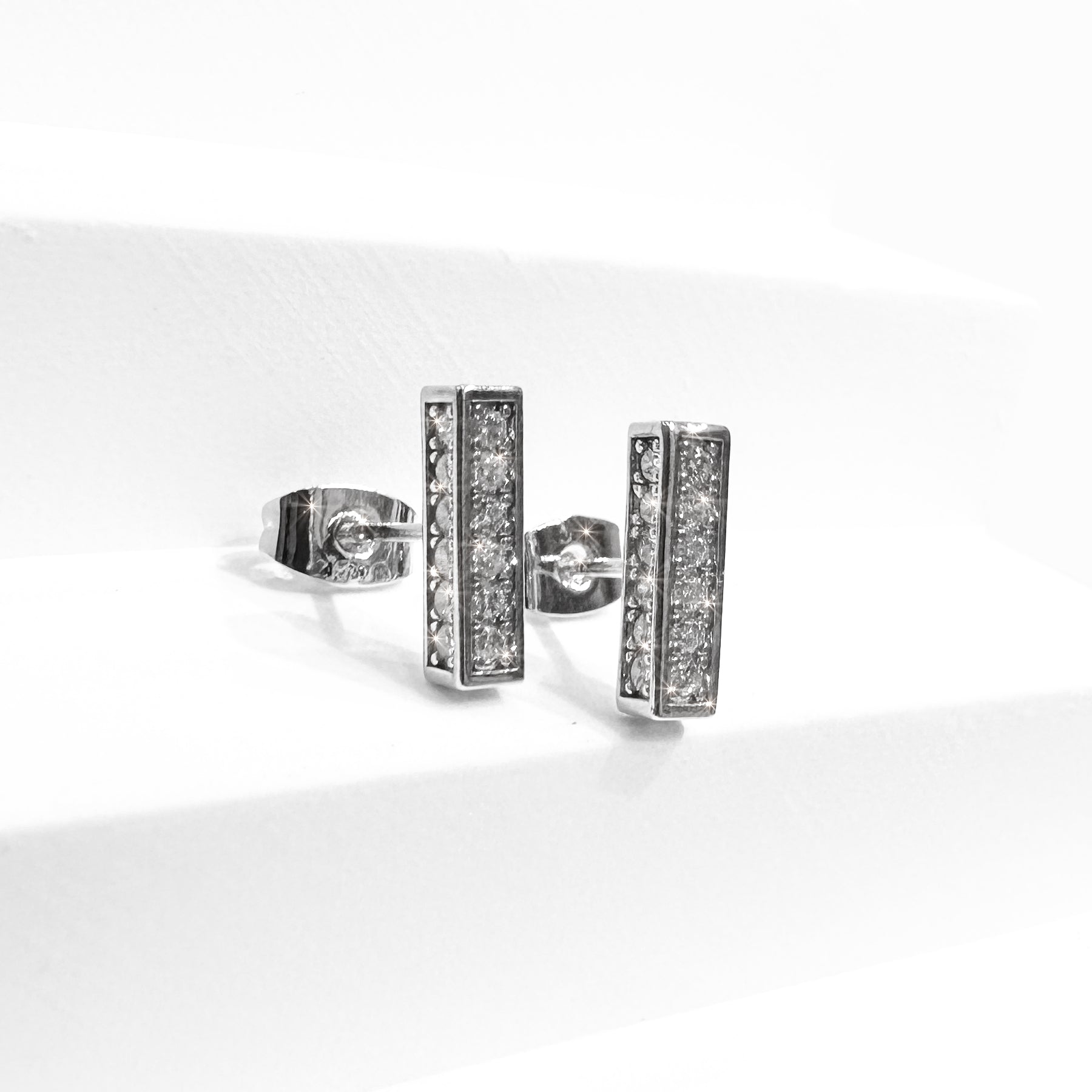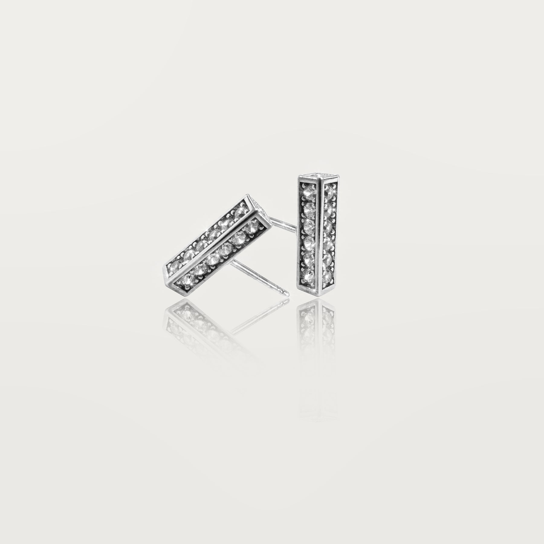 Ces boucles d’oreilles incarnent la sobriété moderne et la finesse intemporelle. Leur forme rectangulaire, entièrement pavée de zircons étincelants, reflète la lumière avec intensité et crée un effet à la fois discret et sophistiqué.