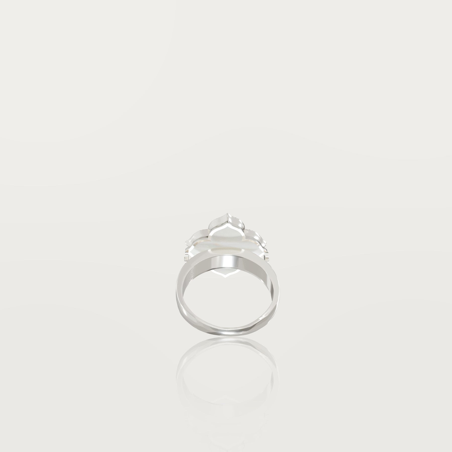 Explore exclusivity with our 18-karat gold ring featuring a reimagined clover. Each point, delicately rounded yet adorned with a spade-shaped tip, offers a distinct touch. Framed by FG-VS white diamonds, this jewel sparkles brilliantly.
